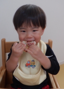「ぬりぬり♪」と言いながらケチャップを塗ったり、