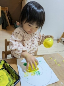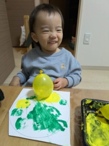 絵の具の感触に戸惑い、“拭いて~💦”と