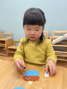 次に、豆入れに貼る鬼の顔もシールで作りました!